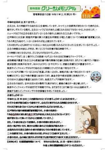 今年の立冬は11月7日です。