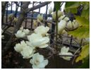 去年の夏前に枝を刈り込み少し木自体の背が低くしましたが、今年も小さな小鳥が並んでいる様に見えます。